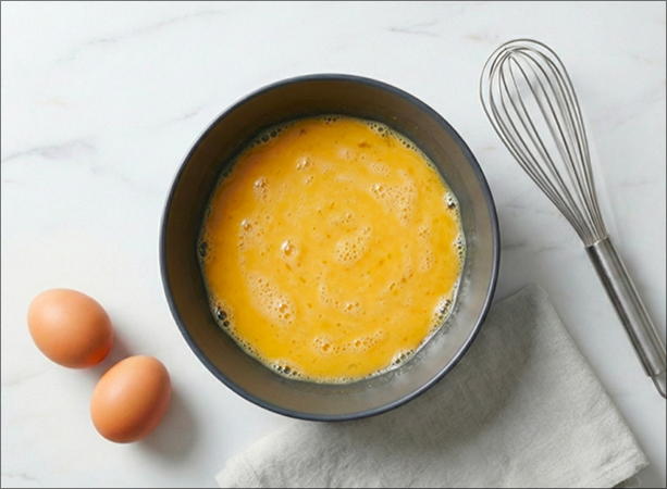 Whisk the eggs vigorously until the mixture is a single, uniform consistency.